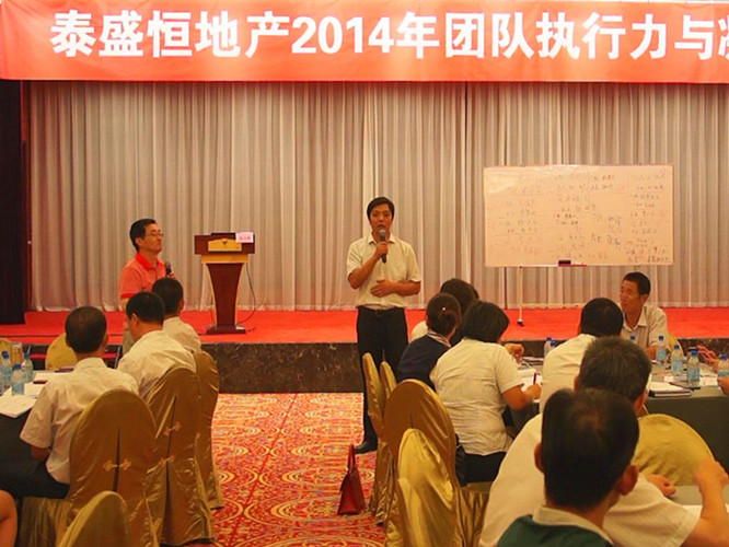 8月16日,伴隨著熱烈的掌聲,泰盛恒地產開展的《打造房地產團隊卓越執行力與凝聚力》培訓在臨沂賓館二樓會議室舉行,華鵬集團人員、地產全員、啟翔全員、港信裝飾公司、鴻豐園林公司、中匯地產等單位相關領導和員工代表共170余人參加了培訓。公司特邀北京華夏基石管理咨詢集團高級顧問涂山青擔任講師。