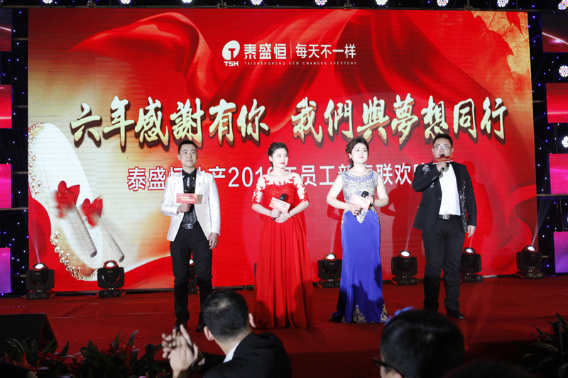 晚會之前,廣大員工紛紛在簽名墻和祝福墻上進行簽名和留言,寫下自己的新年愿望和對公司的美好祝福。下午四時,現場人員共同觀看了公司的拜年視頻、《與夢想同行》主題視頻。隨著開場舞《光耀泰盛恒》的華麗上演,晚會拉開帷幕。公司總經理趙利捷上臺致答謝詞,表達了對員工及其家屬的感謝和祝福,并宣布晚會正式開始。