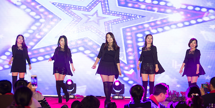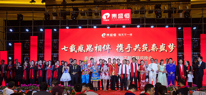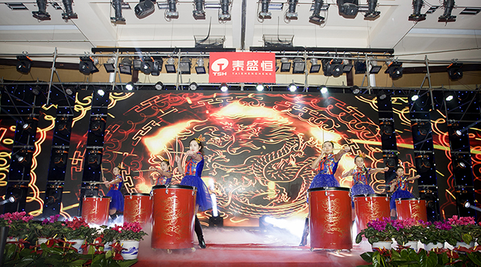 晚會伊始,公司領(lǐng)導(dǎo)與員工們紛紛在簽名墻和許愿樹上簽字并寫下了新年的期待和對公司的良好祝愿。下午4:30,泰盛恒全體職工共同觀看了拜年視頻,現(xiàn)場不時發(fā)出一陣陣掌聲。隨著開場舞《騰飛.泰盛恒》的唯美上演,晚會正式拉開了帷幕。公司董事長馬亞鵬上臺致答謝詞,感謝員工及其家屬一年來的大力支持,并宣布晚會正式開始。