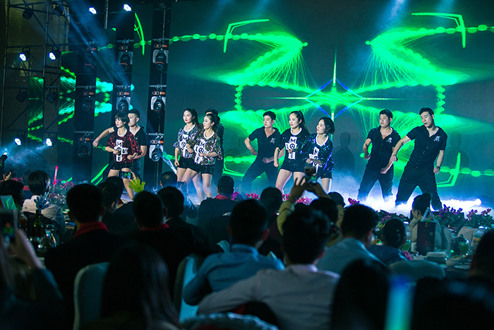 晚上七點,馬董、孫董共同上臺開啟了本場晚會的祝酒儀式,祝酒儀式使用象征著財富、吉祥的“發(fā)財樹”,預(yù)示著公司必將在未來的發(fā)展中財源廣進(jìn)、再攀新高。除了有精彩的節(jié)目,更有激動人心的抽獎環(huán)節(jié)。晚會安排了六輪抽獎活動,以及微信“幸運觀眾抽獎”活動,博得現(xiàn)場觀眾的陣陣喝彩。