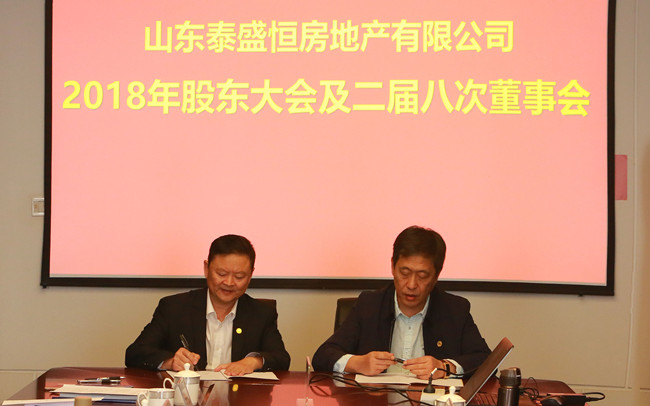 2018年3月30日上午9時(shí),泰盛恒地產(chǎn)2018年股東大會(huì)及二屆八次董事會(huì)在二號(hào)會(huì)議室順利召開。會(huì)議由公司董事長(zhǎng)馬亞鵬主持,陜西金泰恒業(yè)股東代表馬亞鵬、華鵬集團(tuán)股東代表孫鵬、公司董事趙利捷、孫磊出席了本次大會(huì),監(jiān)事會(huì)主席王雅萍、監(jiān)事徐愛斌及公司經(jīng)營(yíng)班子成員列席會(huì)議。