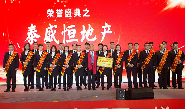為鼓勵(lì)先進(jìn)、激發(fā)活力,會(huì)上對2018年取得突出成績的優(yōu)秀團(tuán)隊(duì)和個(gè)人進(jìn)行了隆重表彰,公司中高層分別為各獎(jiǎng)項(xiàng)頒發(fā)了榮譽(yù)證書及獎(jiǎng)牌。其中,孫董為獲得泰盛恒速度獎(jiǎng)的泰盛廣場項(xiàng)目頒發(fā)了榮譽(yù)獎(jiǎng)牌,鼓勵(lì)大家在新的一年里繼續(xù)奮勇爭先,積極釋放正能量,不斷開拓創(chuàng)新。
