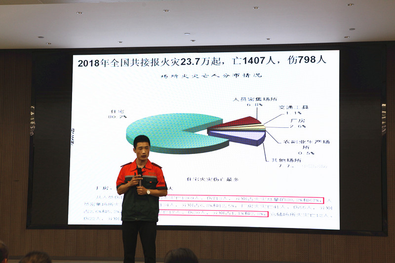 培訓老師以新聞報道、事故案例,結合視頻、圖片進行現場分析。播放講解了近年發生的多起重大火災事故的實例視頻,用觸目驚心的慘痛事故畫面和數字使全體參訓人員的心靈受到了極大的震撼,深刻認識到了“隱患險于明火、防范勝于救災”的重要性。然后結合在工作和生活中用電、用氣、用火的知識,介紹了事故發生的原由及所造成的危害情況,詳細講解了發生火災后的自防、自救、逃生時需注意的事項,并按種類、功能、用途介紹了不同的煙感警報器、滅火器、防毒面具等消防器具。培訓老師通過現場提問和隨堂測試的方式,對員工消防知識掌握情況進行了檢驗。在消防安全知識培訓結束后,教員還組織大家進行了消防逃生演練。